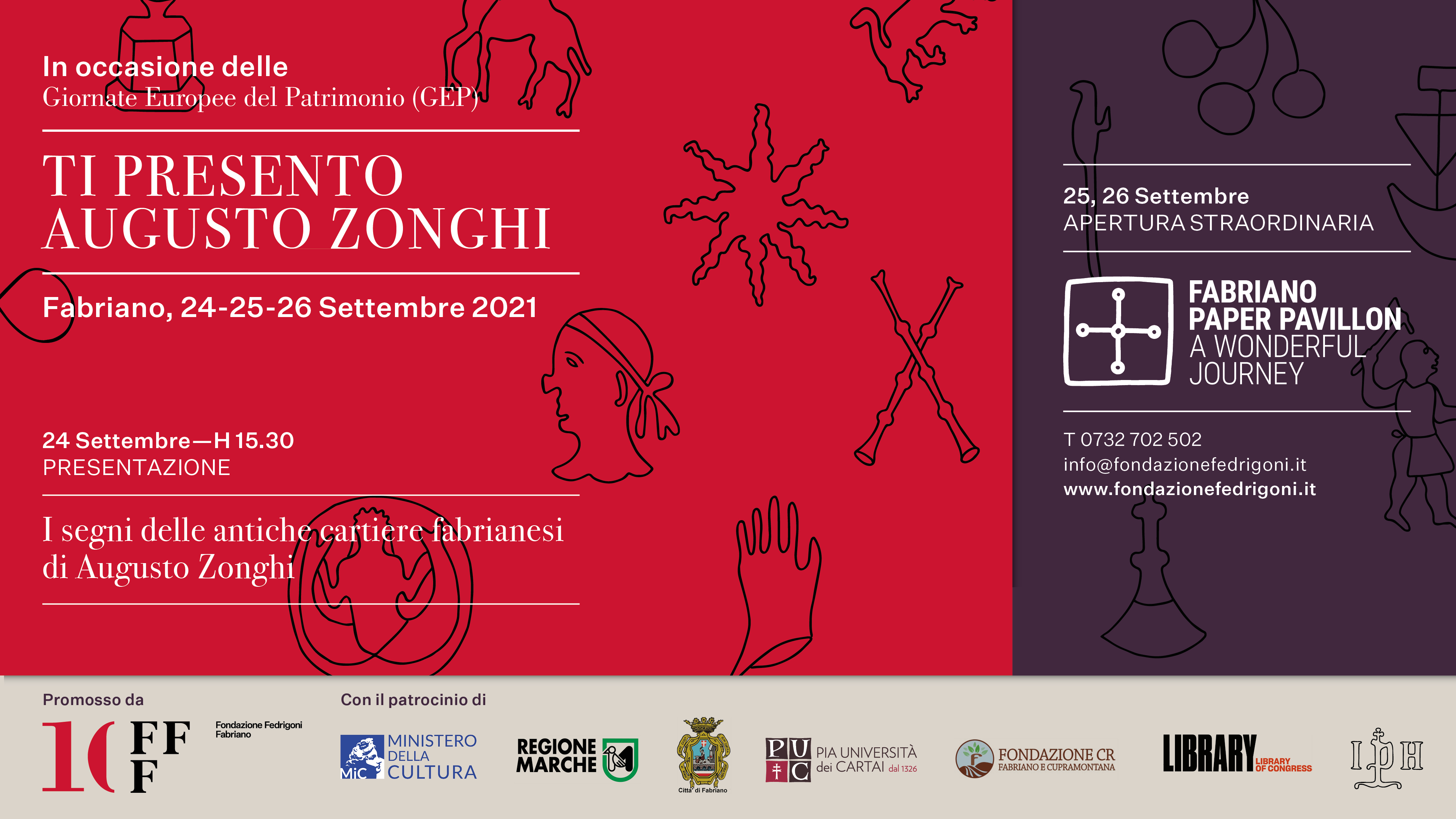 - 24 September at 3.30pm in direct streaming – Presentation on the restoration and the first printed edition of the Album “I segni delle antiche cartiere fabrianesi” by Augusto Zonghi. [A simultaneous English translation will be provided ]. Consult the programme.
