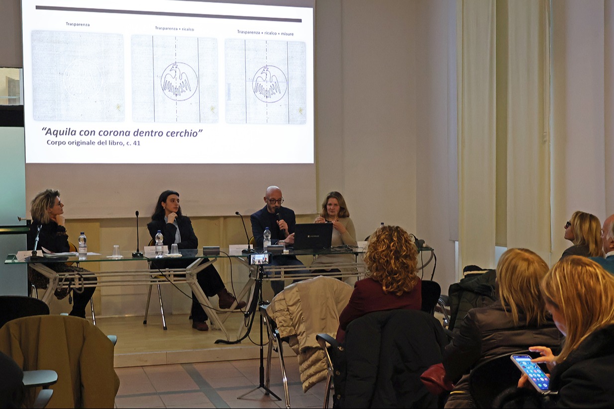L'incontro, condotto da Rosangela Guerra, funzionaria della Soprintendenza, ha visto la partecipazione di Marco Giacanella, Assessore alla Cultura del Comune di Falconara, il Soprintendente Benedetto Luigi Compagnoni, la restauratrice Stefania Zeppieri con Sara Coccoli e Giovanni Luzi della Fondazione Fedrigoni Fabriano, Alessandra Cesanelli dell’Archivio di Stato di Ancona e Massimo Bonifazi della Bonifazi Archivi Sas.
