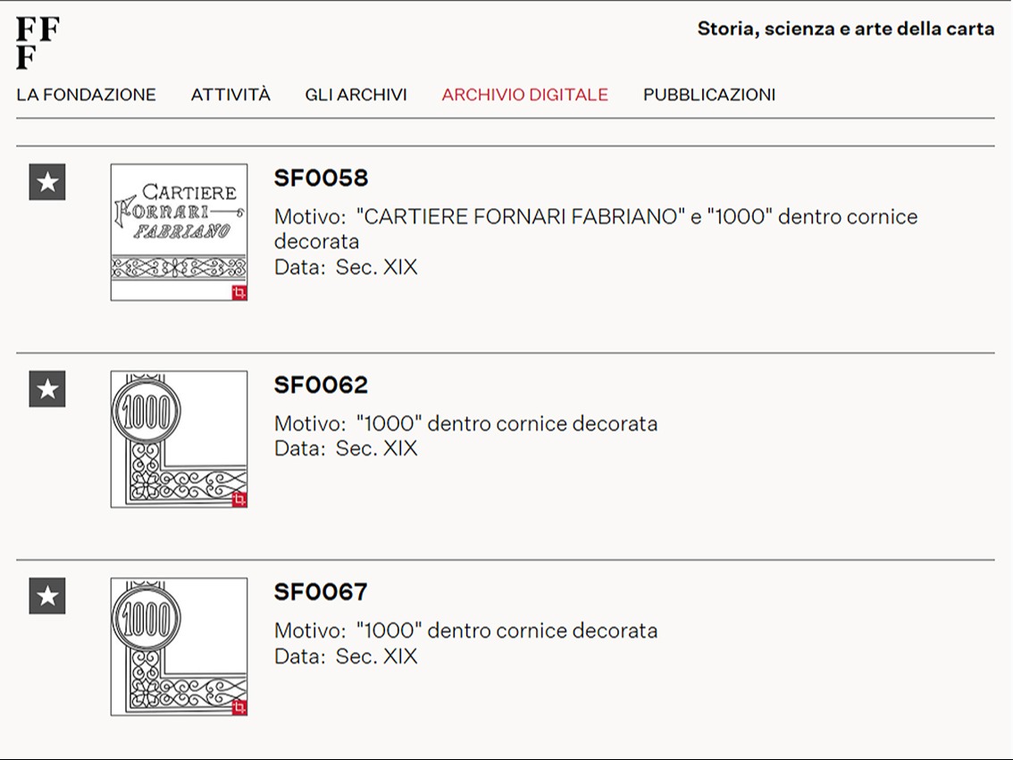 Per consultare solo le carte della “Famiglia Sandro Farroni” nel Corpus Chartarum Fabriano, è necessario entrare nella “Ricerca Avanzata” (https://www.fondazionefedrigoni.it/it/ricerca-avanzata) --> selezionare “Luogo di provenienza” --> “Donazione “Famiglia Sandro Farroni”.