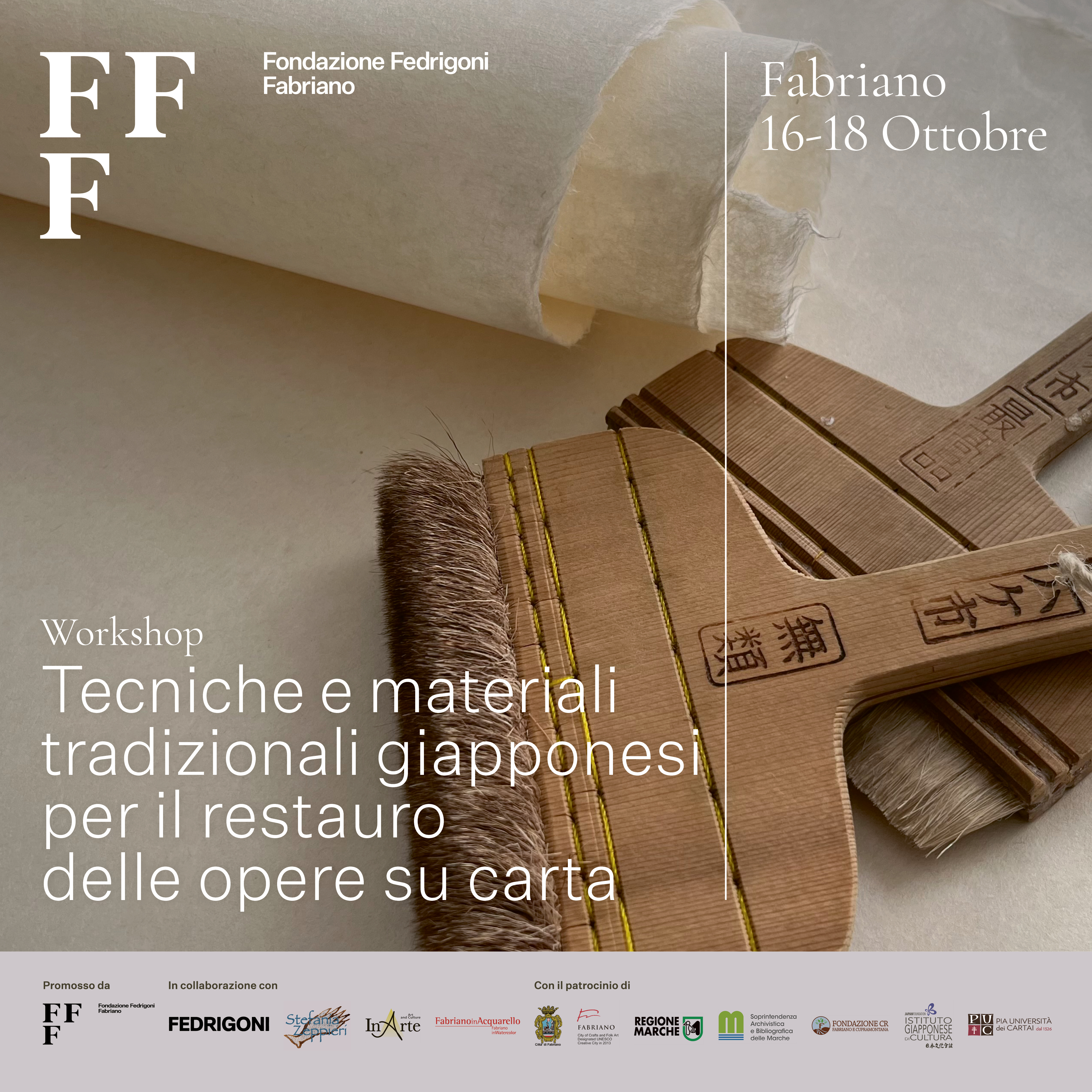 The initiative is promoted by the Fedrigoni Fabriano Foundation in collaboration with FEDRIGONI, Stefania Zeppieri, Associazione InArte, Fabriano InAcquerello, with the free patronage of the Municipality of Fabriano, the Marche Region, the Superintendency of Archives and Bibliography of the Marche Region, the CARIFAC Foundation, the Japanese Institute of Culture, the Pia Università dei Cartai.