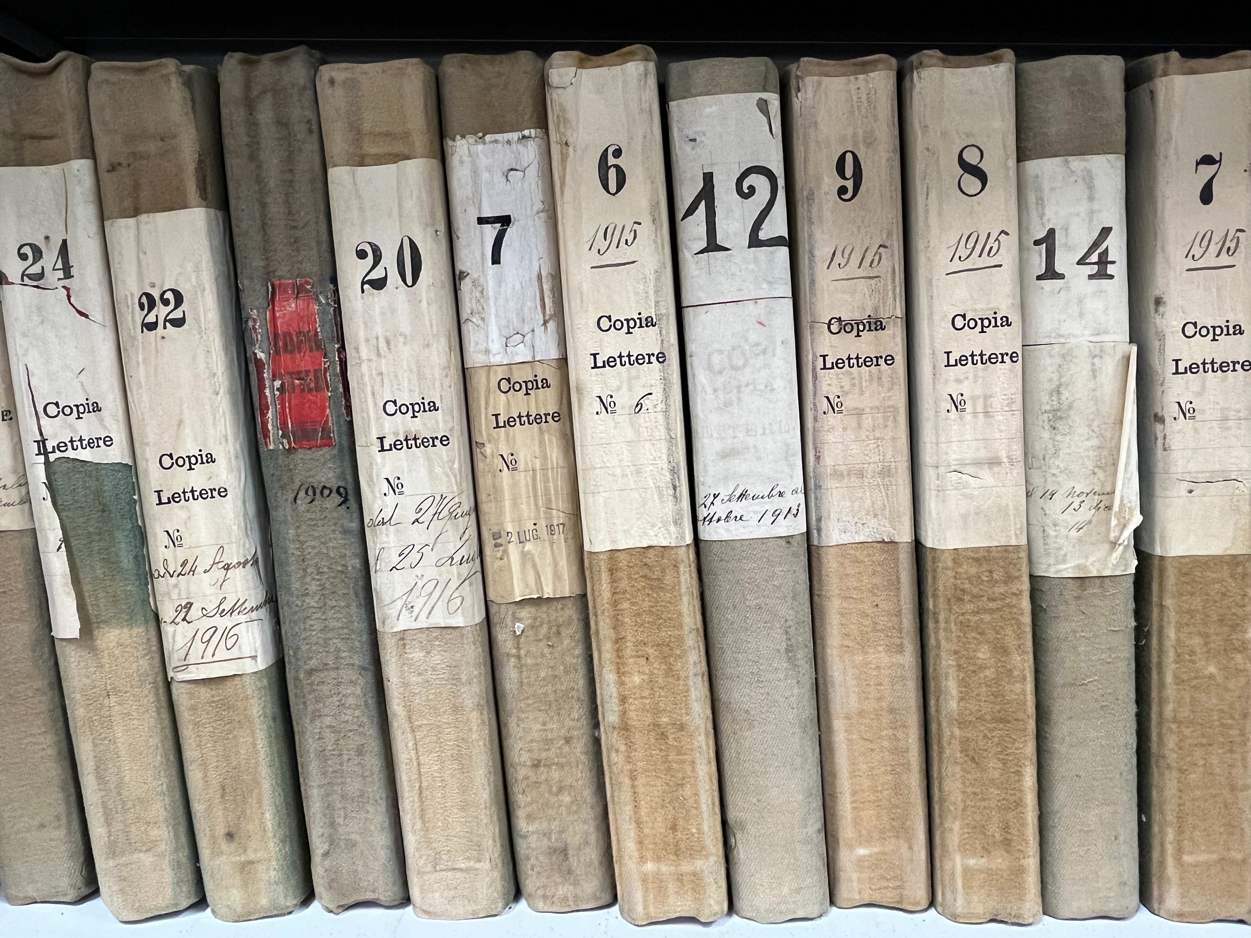 Il fondo, composto da circa 1.100 unità tra registri copialettere e contabili databili dal 1903 al 1955, si presentava in condizioni critiche a causa di una grave contaminazione microbiologica e della conservazione in ambienti non idonei. Dopo la messa in sicurezza, il materiale è stato trasferito nelle nuove scaffalature predisposte presso la Fondazione.
